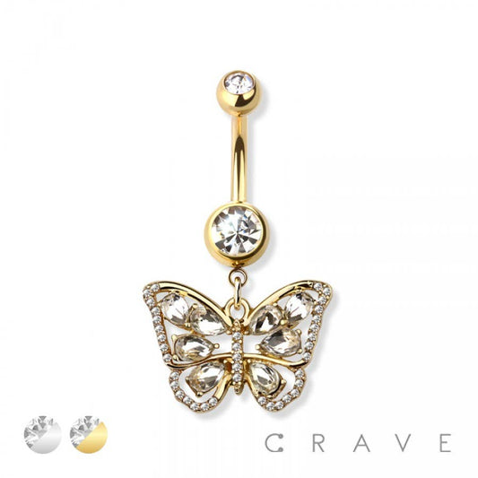BUTTERFLY DANGEL 316L SURGICAL STEEL NAVEL RING