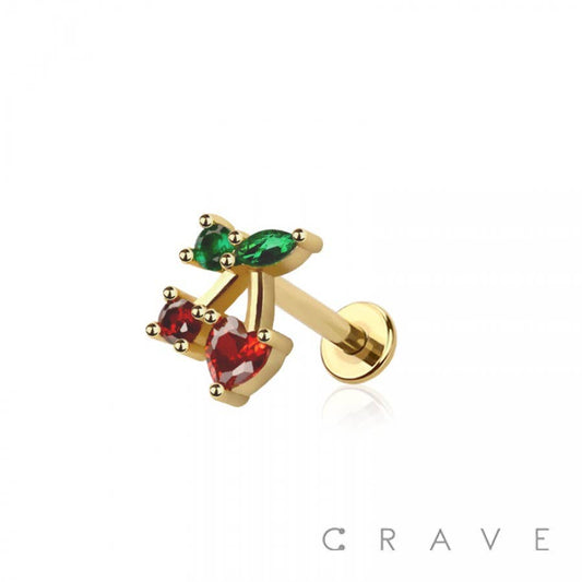 316L SURGICAL STEEL MULTI CZ CHERRY NON DANGLE BELLY BUTTON