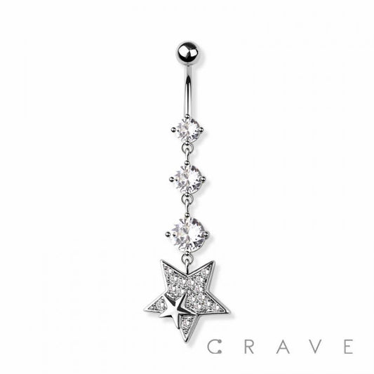 TRIPLE CZ GEM STAR 316L SURGICAL STEEL NAVEL BELLY RING