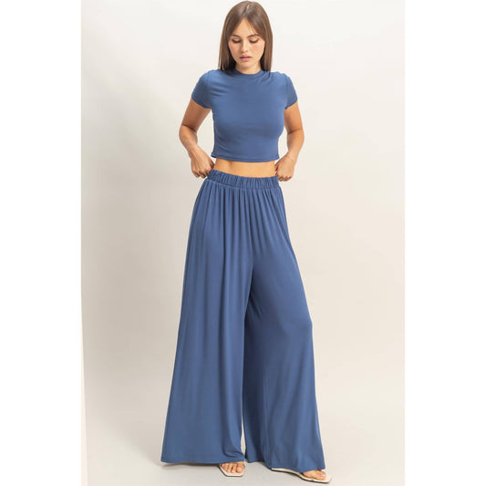 Midnight Navy Top & Wide Leg Pants Set