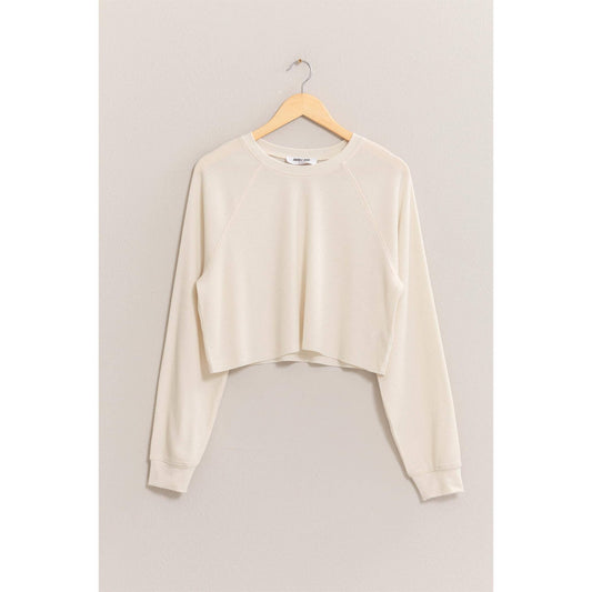Cropped Crewneck Sweatshirt With Oversized Sleeves