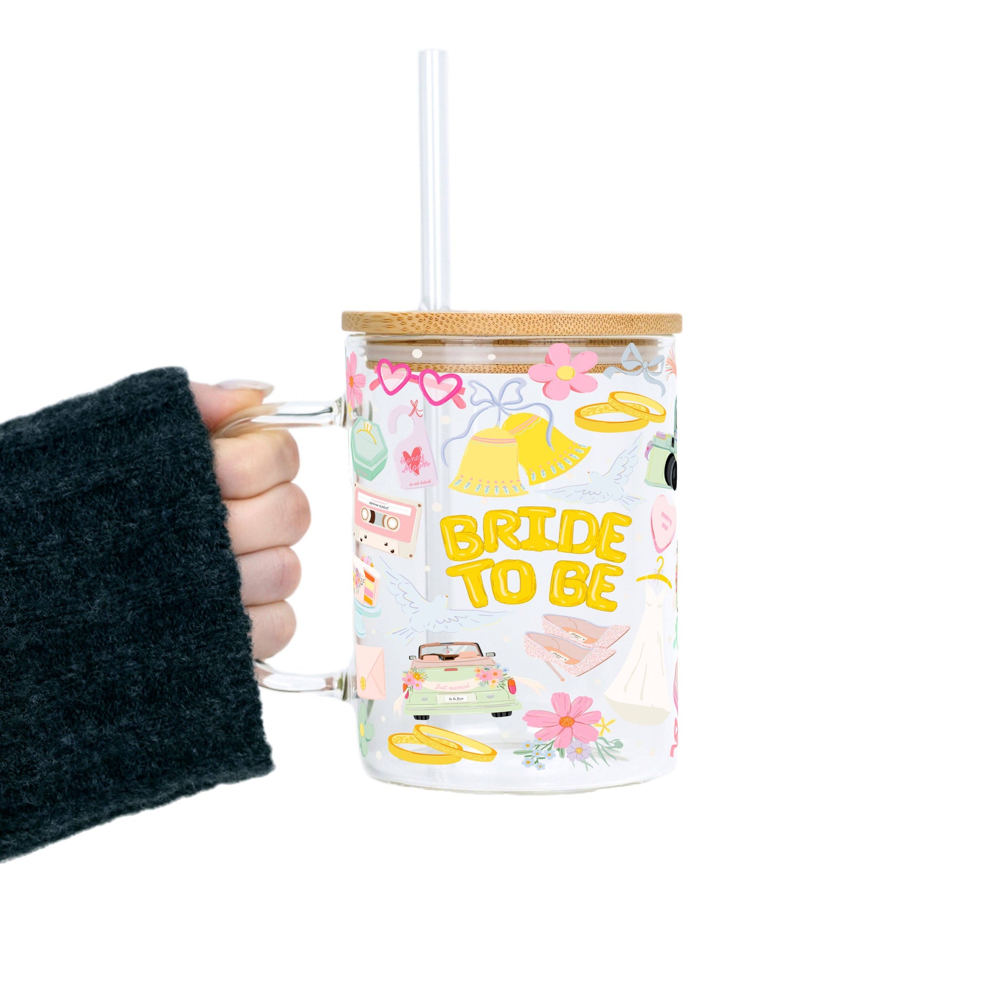 Bride To Be Clear Glass Mug With Lid & Straw
