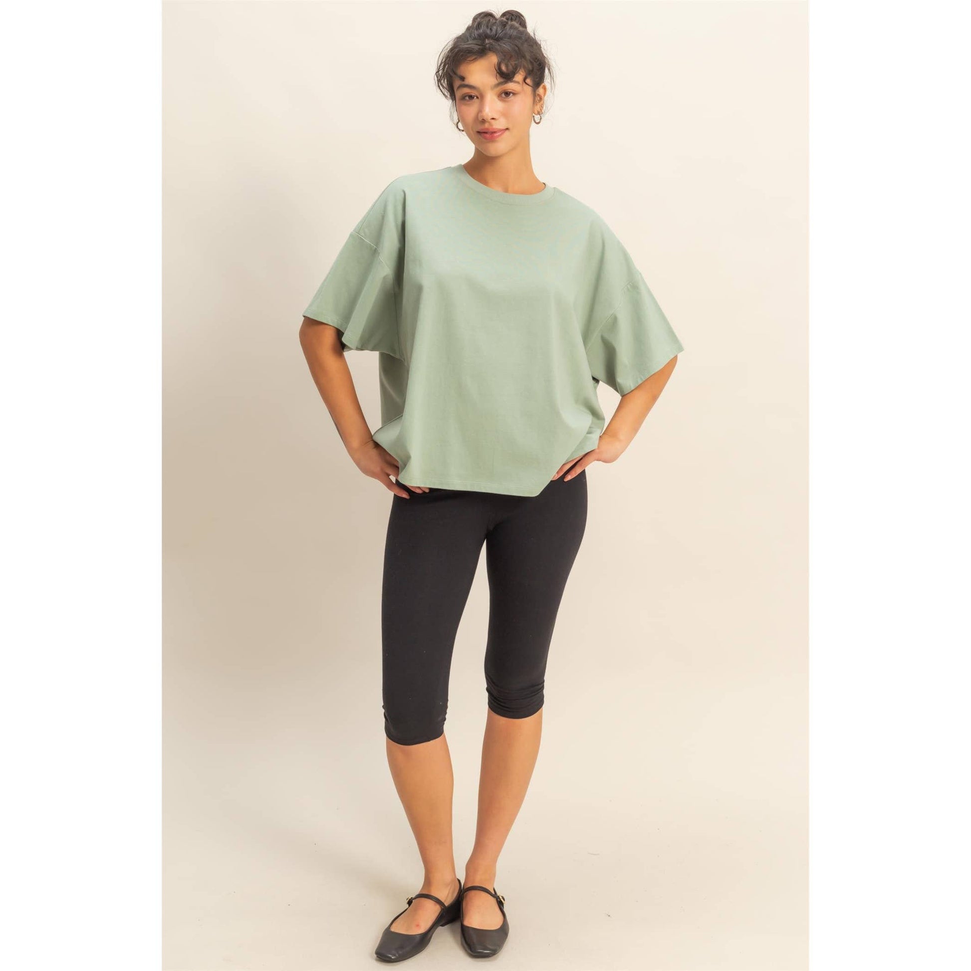 Head Out For A Quick Hike In This Comfortable Everyday T-Shirt. Featuring An Oversized Silhouette, This Tee Shapes A Crew Neckline And Short Sleeves With Drop Shoulders. Perfect For Casual Days, This Tee Can Be Styled In Various Ways. 100% Cotton Model Is 5' 7" Tall, 32" Chest, 25" Waist, 36" Hips And Wearing A Size Small Imported. Designed in the USA