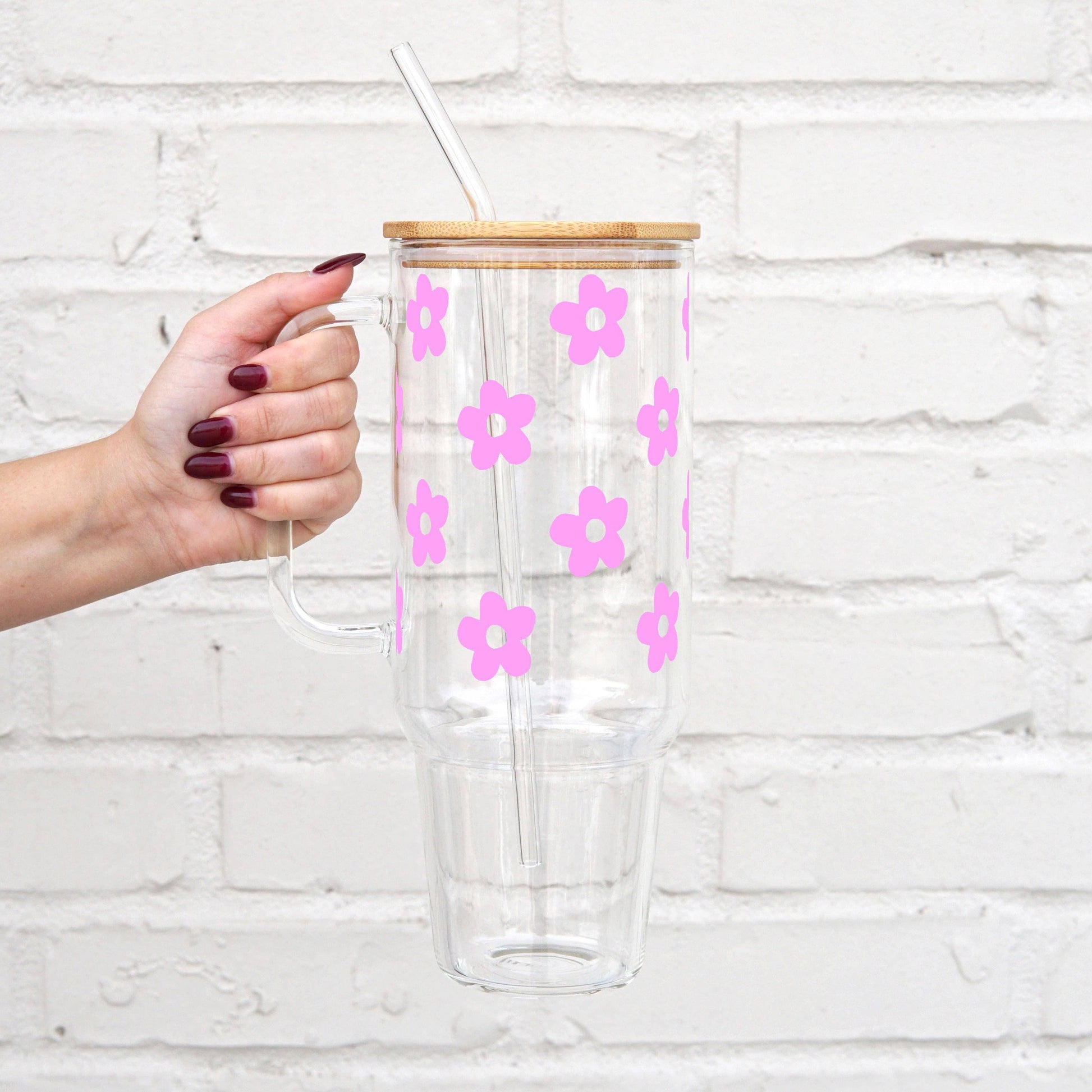 Daisy 40oz Glass Tumbler With Lid and Straw