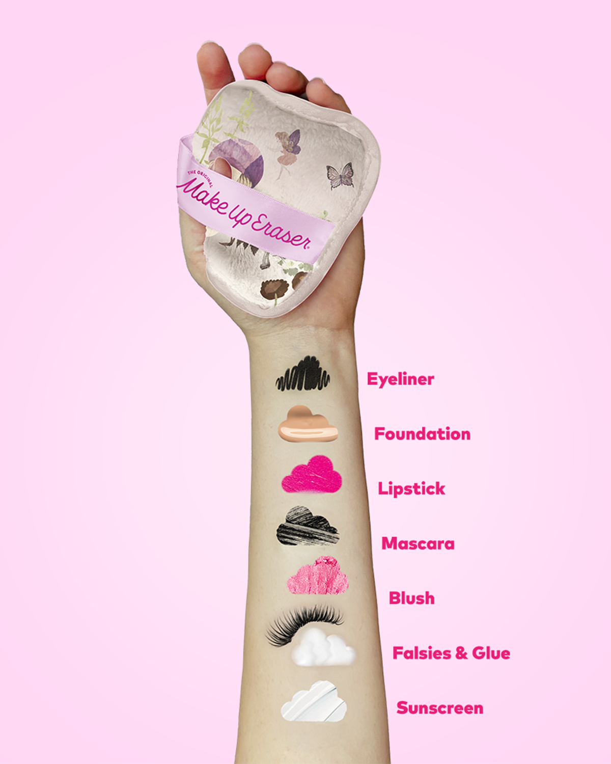 Erase all makeup with JUST WATER™ including waterproof. Our patented, water-activated, cloud-soft fibers gently & easily remove all makeup & sunscreen/SPF from pores. 2 in 1 benefit: one side erases makeup & one side exfoliates skin.