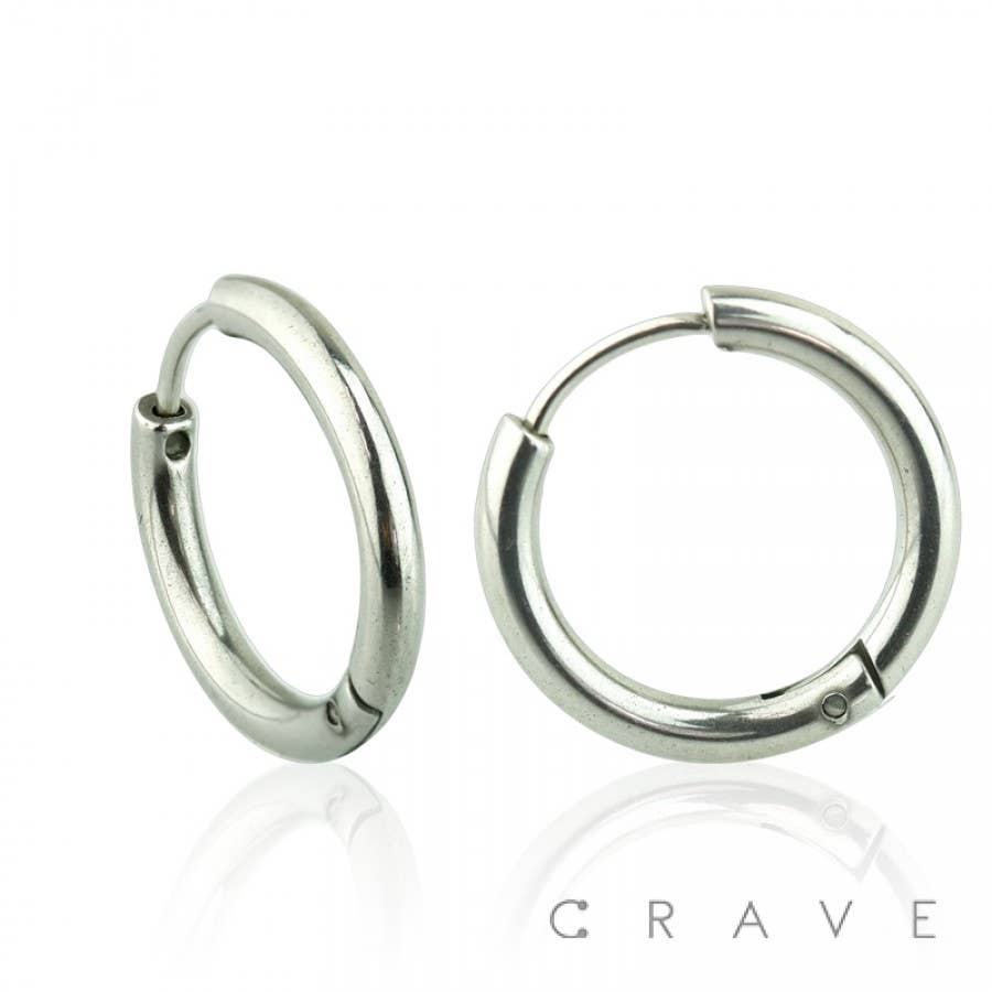 PAIR OF STAINLESS STEEL SIMPLE HOOP EARRINGS